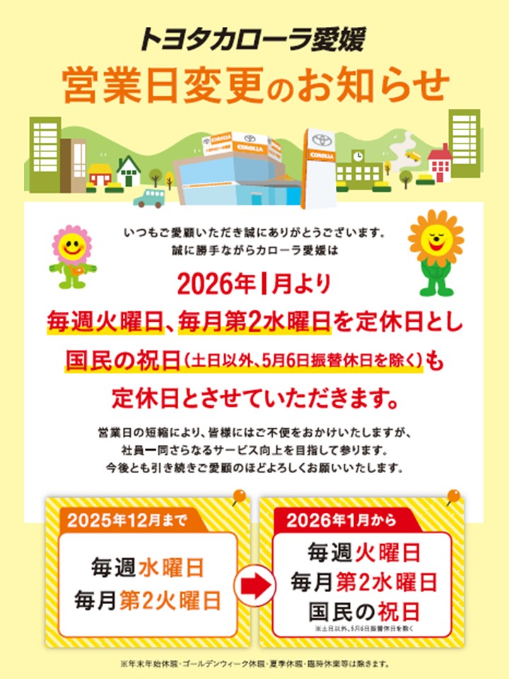 日頃よりトヨタカローラ愛媛をご愛顧いただきありがとうございます。